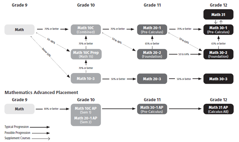In 2012, the new Alberta program of studies was implemented at the senior high level, which is an unprecedented change offering two courses accepted at university and other post-secondary institutions. We counsel students to make strategic and informed program choices to achieve their goals. Every student is encouraged and supported in their journey to succeed in mathematics.