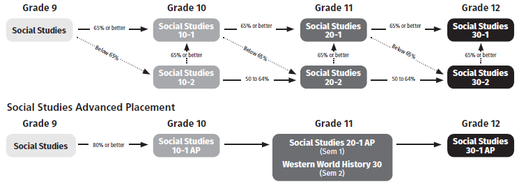 The goal of the Social Studies program is to promote a sense of belonging and acceptance as you engage in active and responsible citizenship. The program has a strong focus on Canadian and Alberta history and you will become involved in your own learning by asking questions, sharing ideas and understandings and working with others. Both courses meet graduation requirements and require that you write a diploma examination upon completion of the 30 level course.